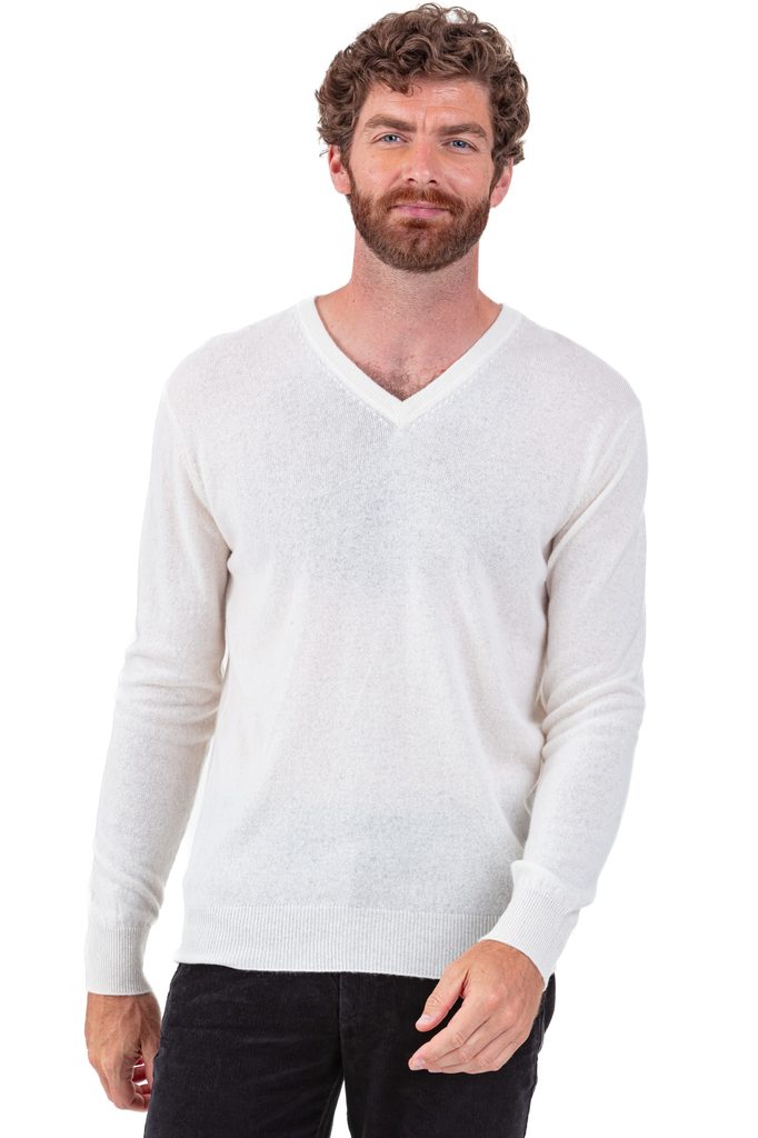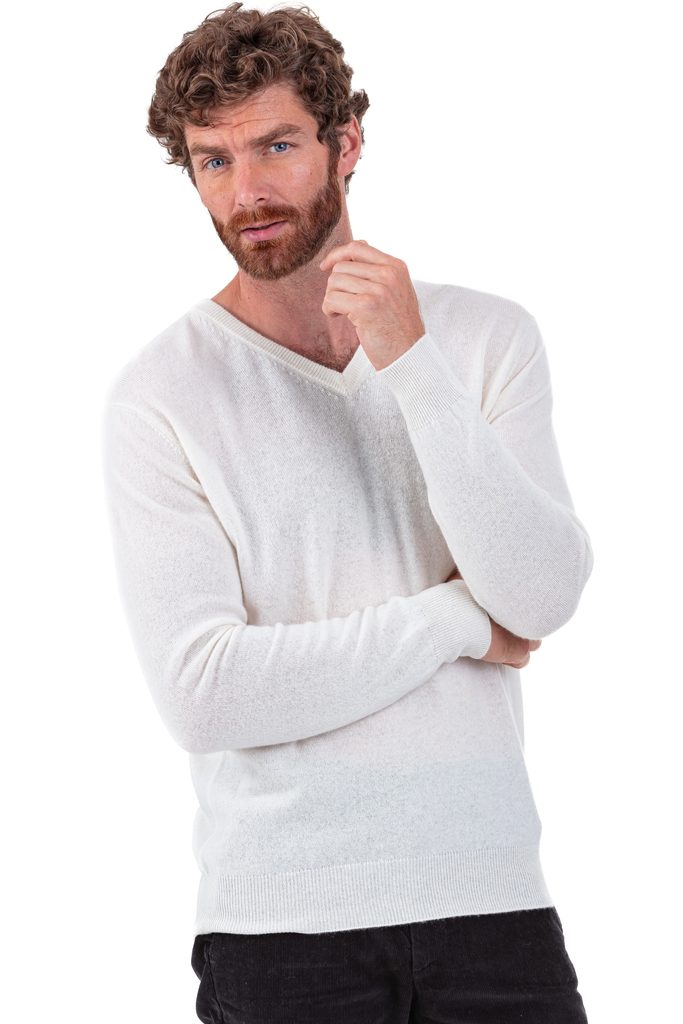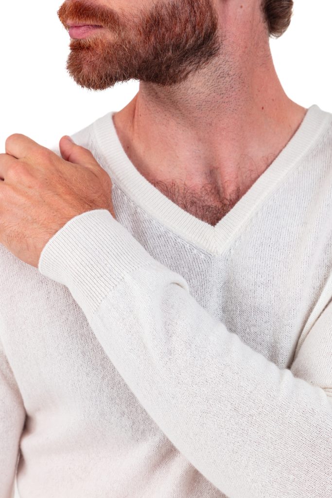 Džemperis ar V-veida izgriezumu, kuru varat valkāt virs krekla vai tieši uz auguma, lai Jūs sajustu kašmira maigumu.